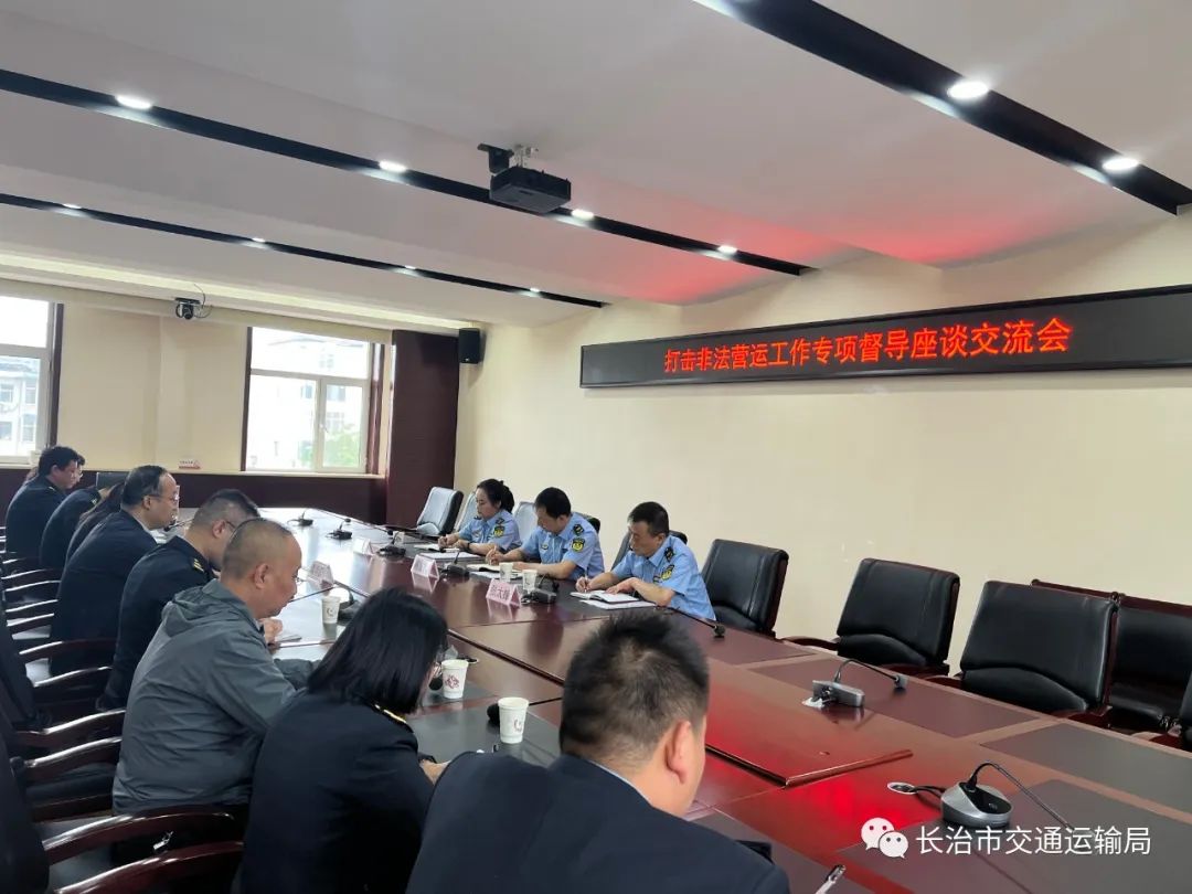 座谈会上,督导组听取了全市打击非法营运专项工作的开展情况、当前面临的困难和下一步工作措施。督导组对长治市打击非法营运工作给予了充分肯定,同时提出要以本次专项工作为契机,强化各部门联合行动,加强信息共享;要坚持依法行政、执法为民的宗旨,切实维护合法权益,展现交通运输执法新形象。