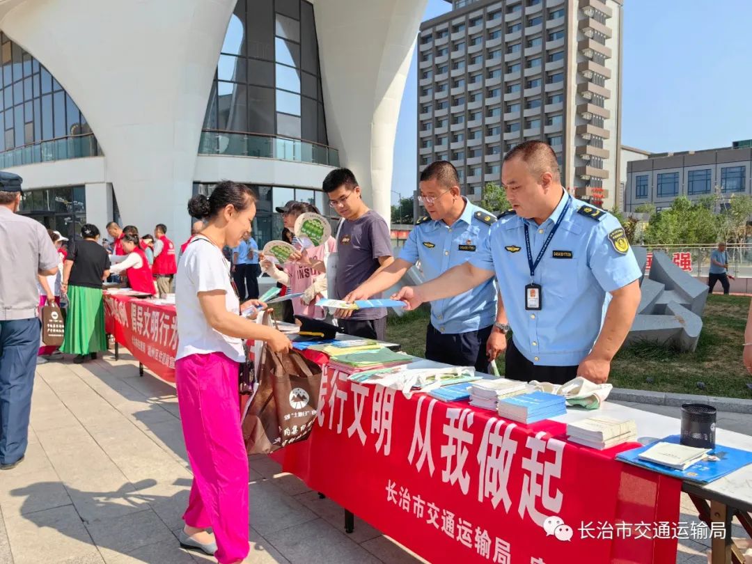 活动现场,通过设置宣传展位,悬挂“践行文明 从我做起”宣传条幅,向过往群众发放文明乘车、《行政处罚法》《山西省道路运输条例》等宣传资料,现场为群众讲解文明出行等知识,引导全民努力营造文明和谐的交通环境。