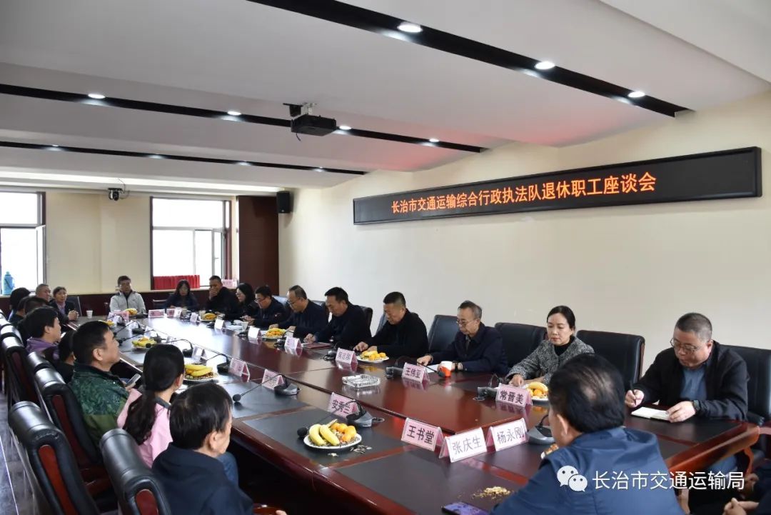 “金秋十月爽,九九话重阳”,为传承敬老爱老美德,弘扬爱老助老传统,10月23日,长治市交通运输综合行政执法队组织召开退休职工座谈会。局党组书记、局长王克,局党组成员、副局长吴志刚,局相关科室负责人及队领导班子成员到会参与座谈慰问,14余名退休职工出席座谈会。会议由局党组成员、市交通运输综合行政执法队队长周会彦主持。