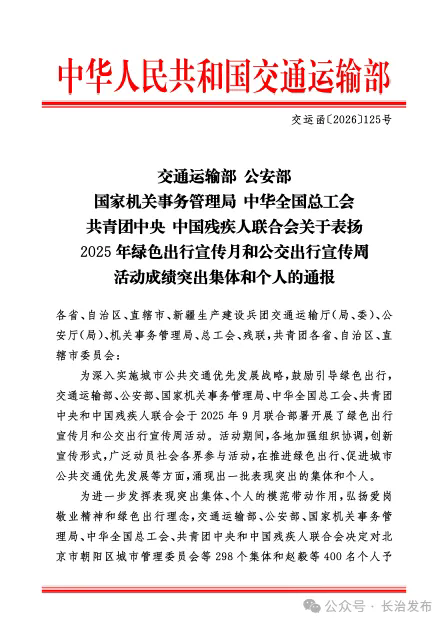 《关于表扬2025年绿色出行宣传月和公交出行宣传周活动成绩突出集体和个人的通报》
